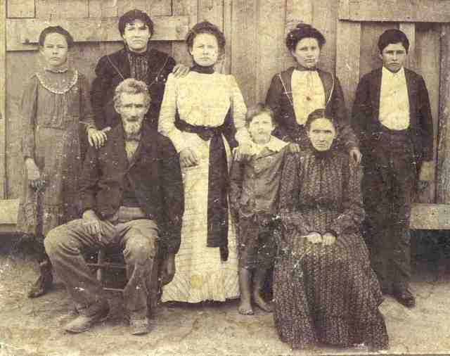 William Cas and Sarah Young in front with siblings left to right Lola, Susan, Lena, James Osborne (Jim), Mary Olivia (Leva), and Cleve